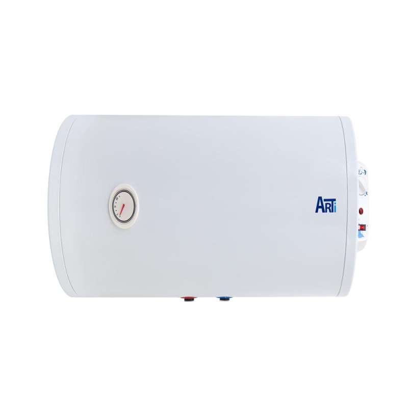 Водонагрівач накопичувальний Arti, потужністю 2000 ВТ з мокрим теном, обладнаний баком 50 літрівз антикорозійним склокерамічним титановим покриттям. горизонтального монтажу з механічним керуванням та зовнішнім терморегулятором.440x540x440 мм. 19 кг.