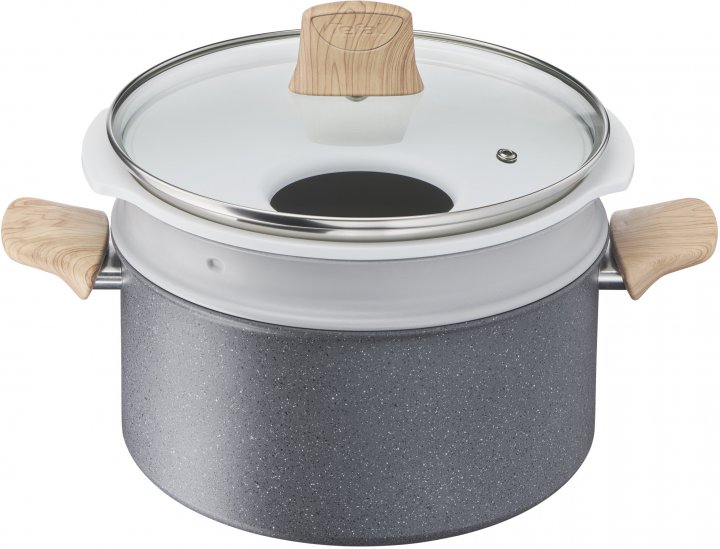 Особливості - Індикатор нагрівання Дві ручки Отвір на кришці для виходу пари Роздільні зони для приготування